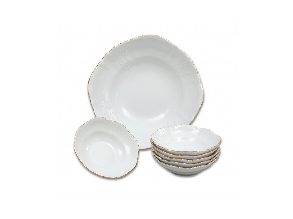 BERNADOTTE zlatá linka, Kompotová souprava 7 dílů, bílá, Thun