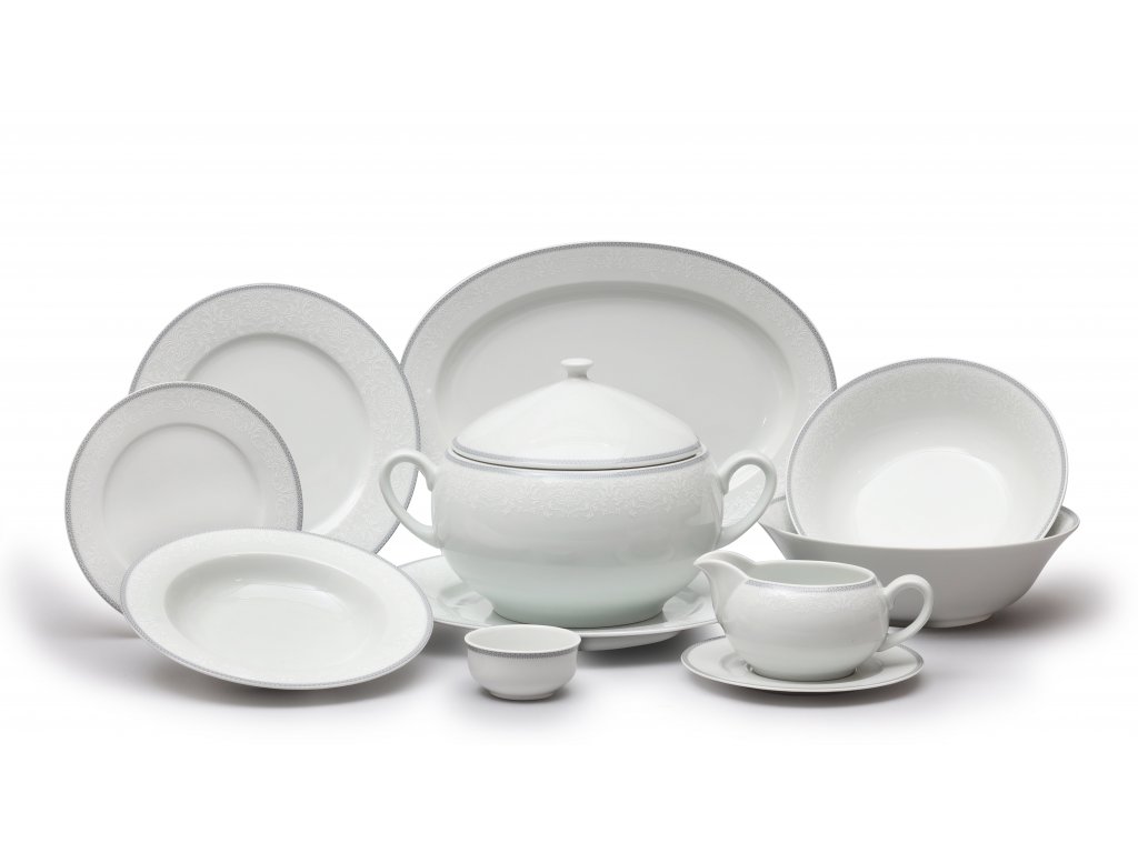 OPAL, svadobná šedá, Obedová súprava 25 dielov, čipka, Thun
