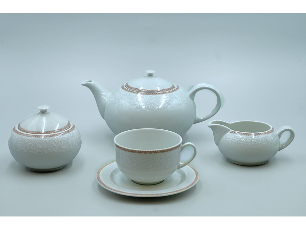 • čajová súprava zo sady OPAL v dekore svadobná hnedá s čipkou obsahuje: