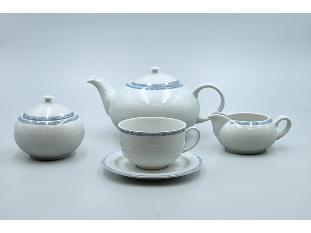 • čajová súprava zo sady OPAL v dekore svadobná modrá s čipkou obsahuje: